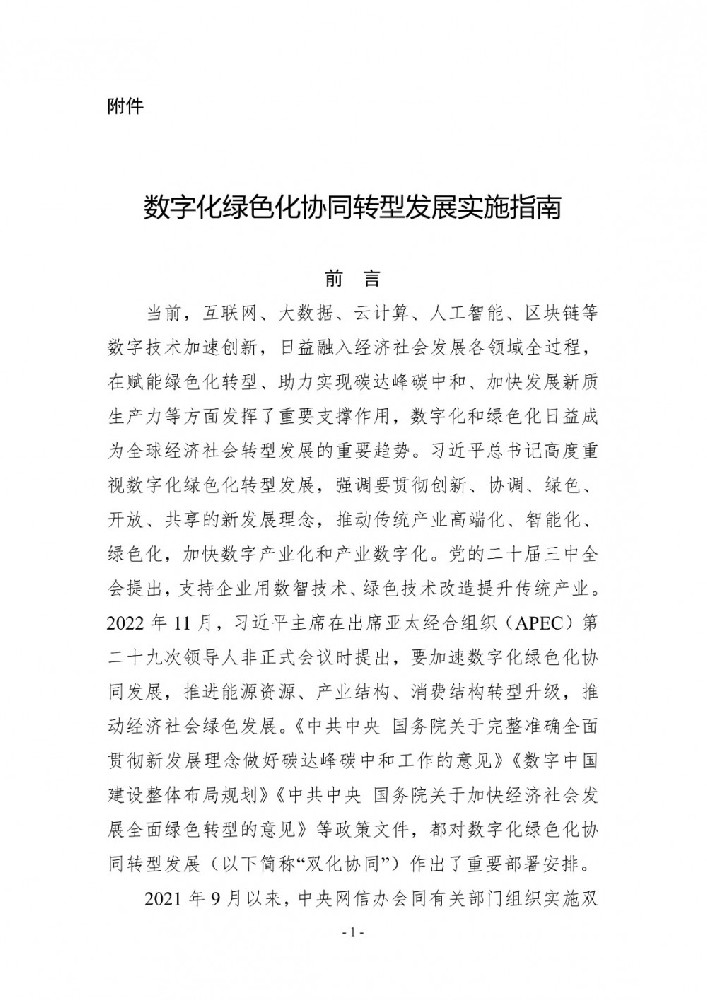关于印发《数字化绿色化协同转型发展实施指南》的通知