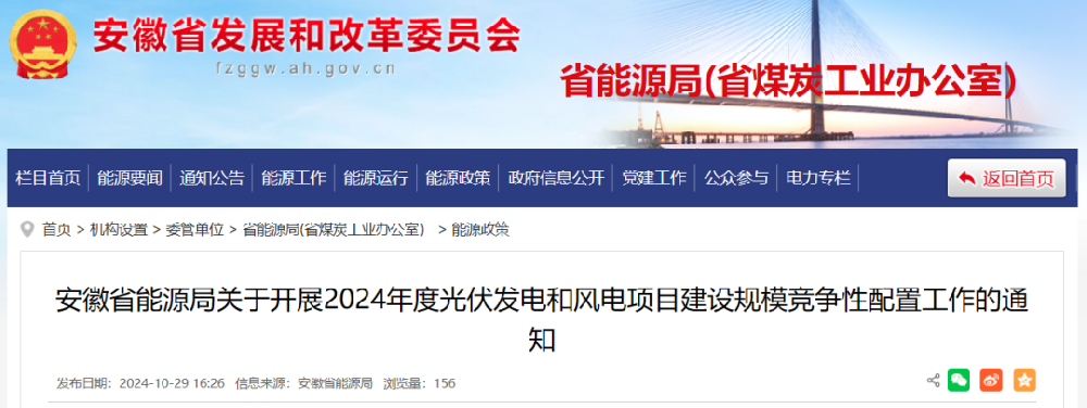 安徽省2024年度风电项目建设规模竞争性配置方案