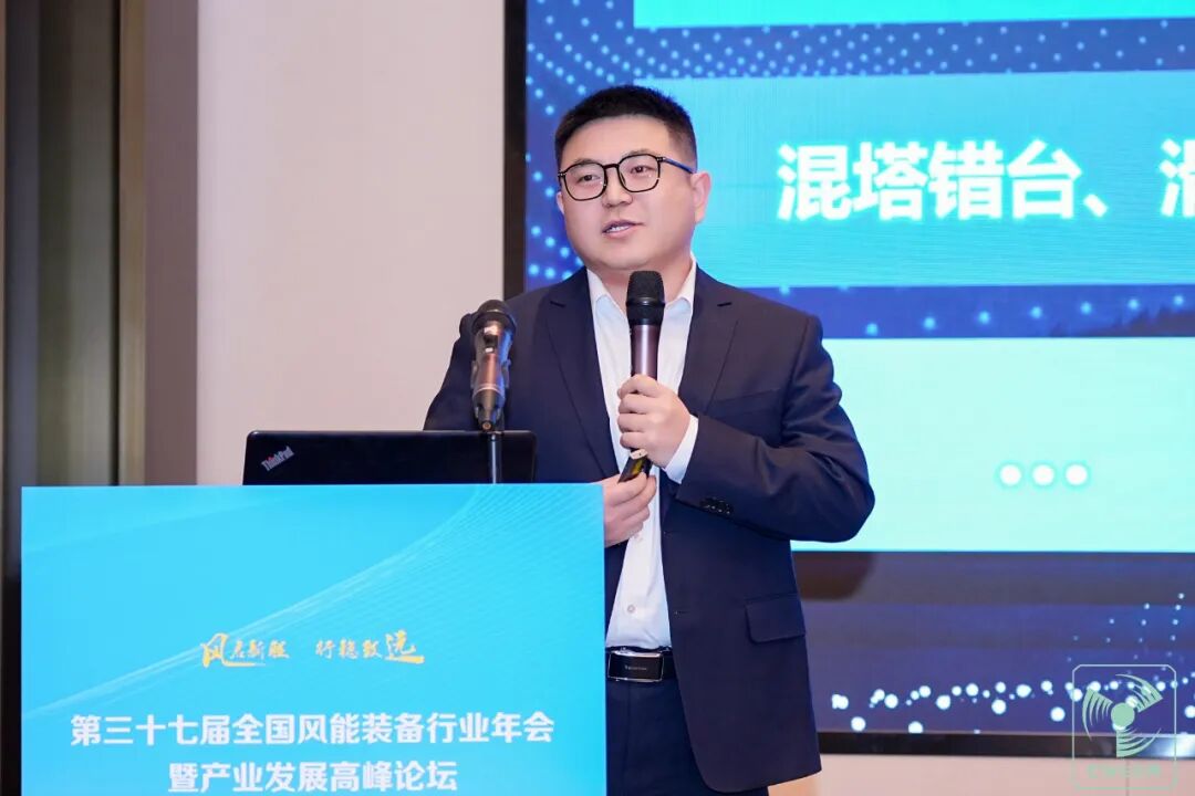 在“风力发电机组技术论坛”上,三一重能解决方案中心副部长吴宝鑫发表了题为《大型化背景下的风资源精细化评估及机组选型》的主题宣讲。